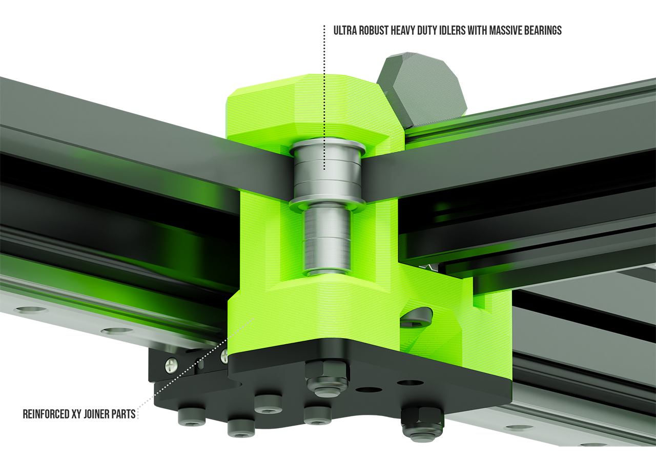 While previous V-Core versions, like many other printers on the market, relied solely on 20 Series profiles, the V-Core 3 is fully built on a 30 Series aluminium frame. From screws and nuts to brackets and plates, everything is bigger, stronger and tougher.