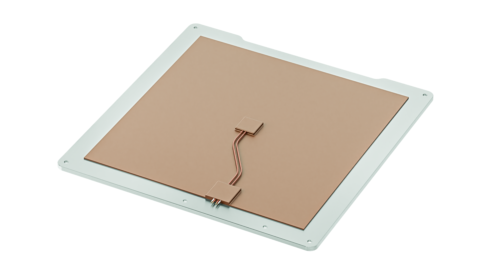 Custom Keenovo Heat Pad with pre-wired 157ºC Thermal Fuse for extra safety (Optional). The wiring comes out of the pad slightly off-center, so it's neatly guided to the back of the machine without interfering with the bed mounting point at the back.